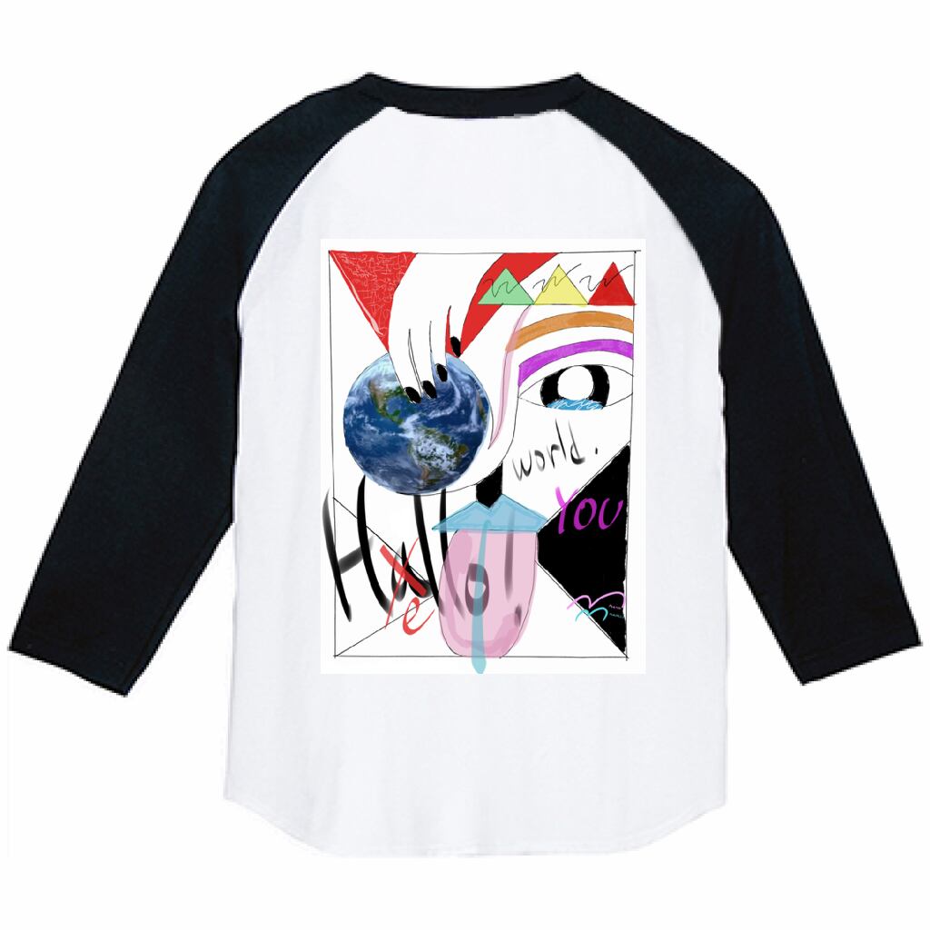 このTシャツは、コスモポリタニズム(世界市民思想)を象徴したデザインで、愛と憎しみ、混沌と秩序、涙と希望相反する要素が共存する世界を表現しました。